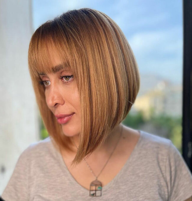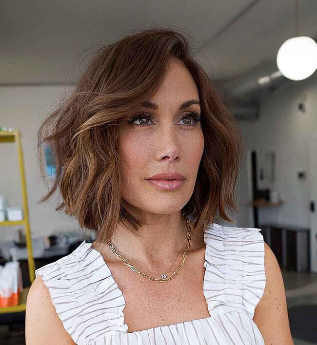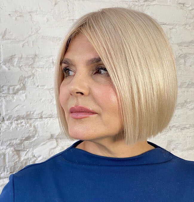 Удлиненный боб — маскирует изменения контура лица и морщины на шее.