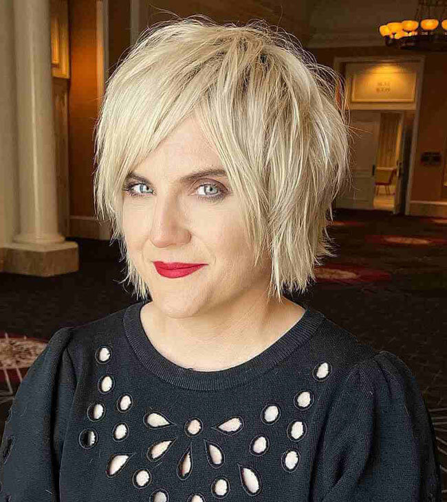 Короткий шегги — идеально подходит для круглого лица, помогая визуально его вытянуть.