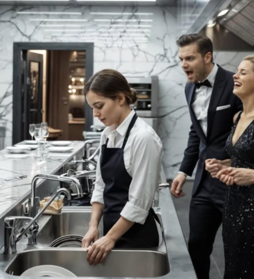 Ей приказали мыть посуду на гала-вечере — не зная, что её муж-миллиардер был хозяином этого места.