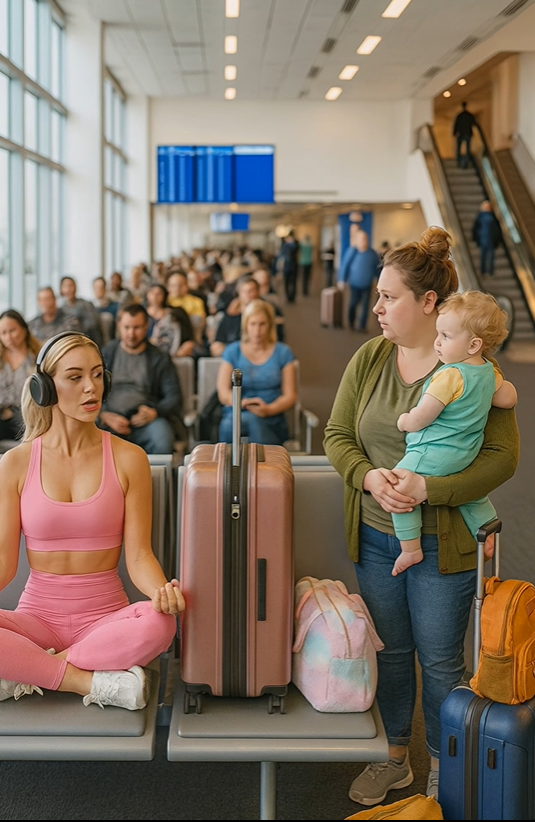В переполненном аэропорту молодая девушка заняла сразу два места, и когда мать с ребёнком вежливо попросила её освободить одно, она устроила такой скандал, что весь зал был в шоке