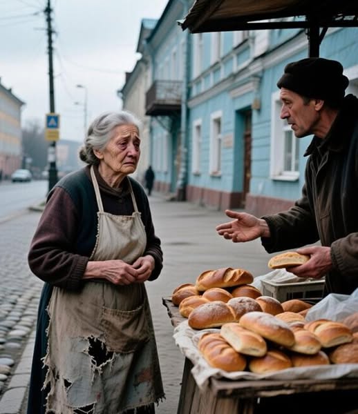 — Умоляю тебя, деточка, пожалей меня, уже три дня не ела хлебушка, а денег вовсе не осталось – умоляла бабуля у торговки