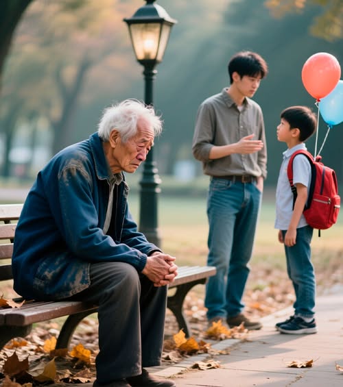 — Пап, там дедуля старенький сидит, плачет, он пить хочет. Мы можем купить ему водицы, а ещё блинчик? ! – упрашивал сын отца