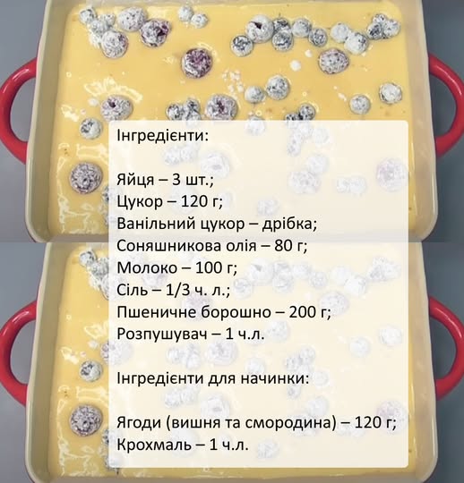Все перемішую і в духовку. Ніжний ягідний пиріг