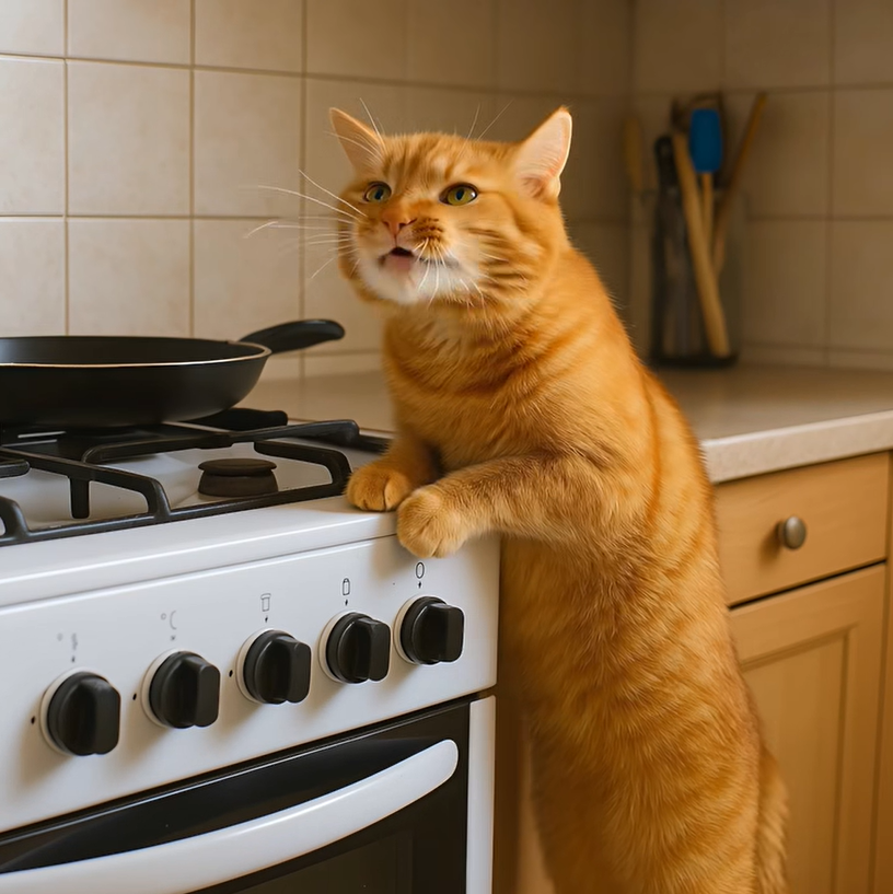 Кот вел себя странно весь вечер։ Он шипел, мяукал и не отходил от плиты