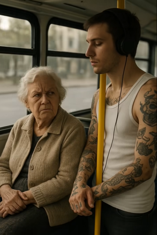В автобусе пожилая женщина резко осудила парня с татуировками — но не ожидала, чем всё обернётся
