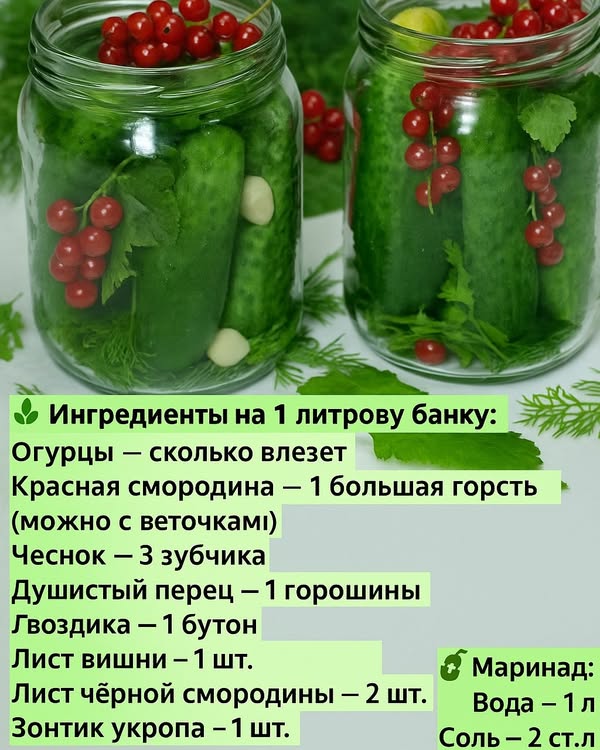 🥒 Огурцы с красной смородиной — оригинальный рецепт без сахара!