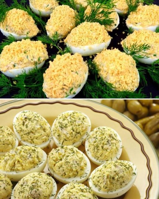Фаршированные яйца с салатом «Мимоза»: быстрая и вкусная закуска