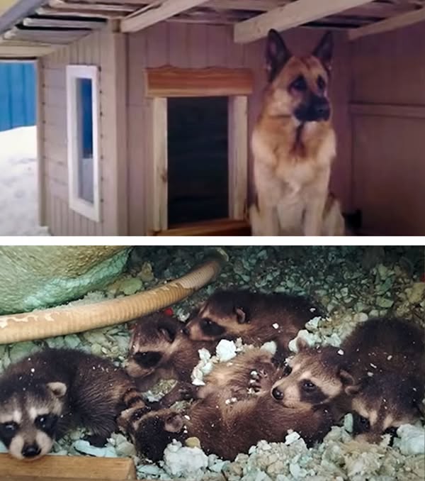 Собака отказалась заходить в теплую будку, стоя на морозе. Хозяин решил заглянуть внутрь и увидел другого зверя