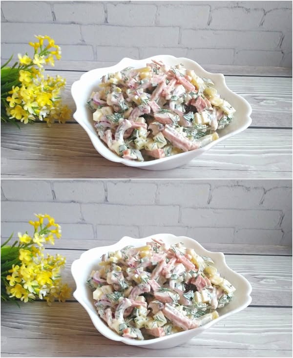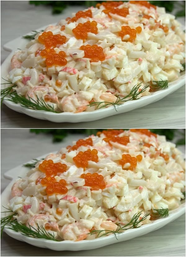 Салат “Нептун” готовлю уже 5 лет подряд и всегда он съедается первым