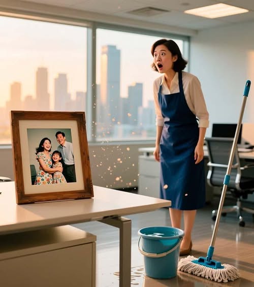 Она мыла полы в кабинете директора — и вдруг увидела своё фото в рамке на его столе… Что было дальше, озадачило