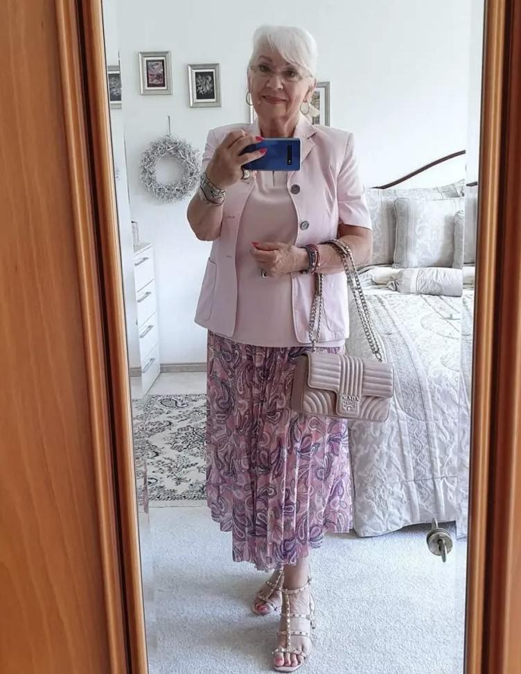 Хельга Люкс демонстрирует, что стиль и элегантность — это состояние души, а не привилегия молодости. В любом возрасте можно быть модной, уверенной в себе и наслаждаться каждой деталью своего наряда.