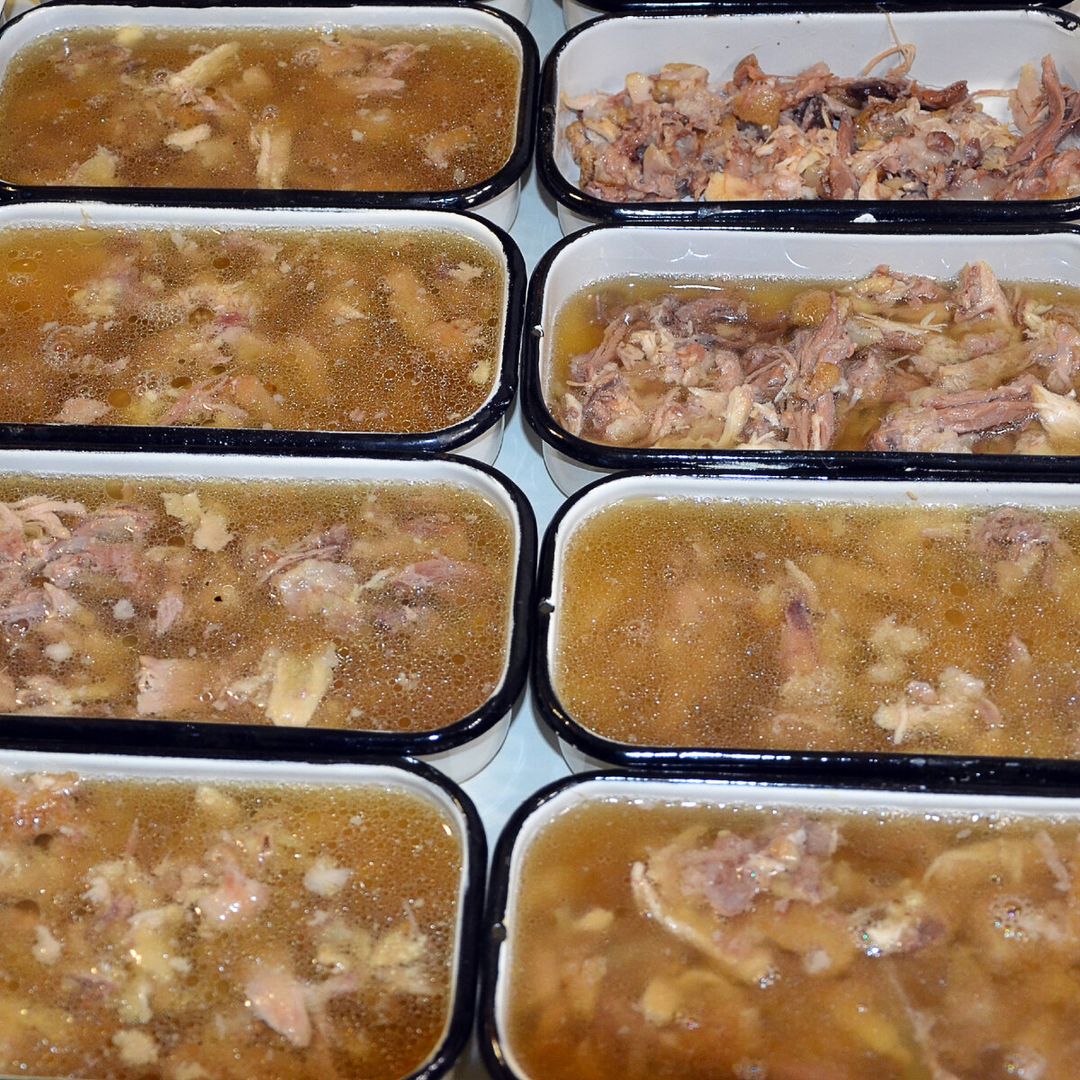 - Секрет идеального холодца: Многие повара добавляют немного говяжьих или свиных костей — это помогает добиться плотного желе без использования дополнительных желирующих веществ.