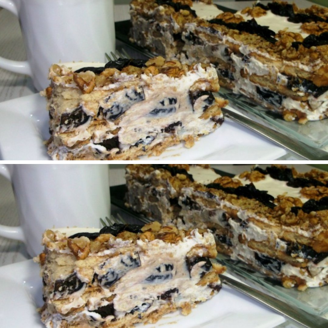Изысканный торт без выпечки с черносливом и орехами