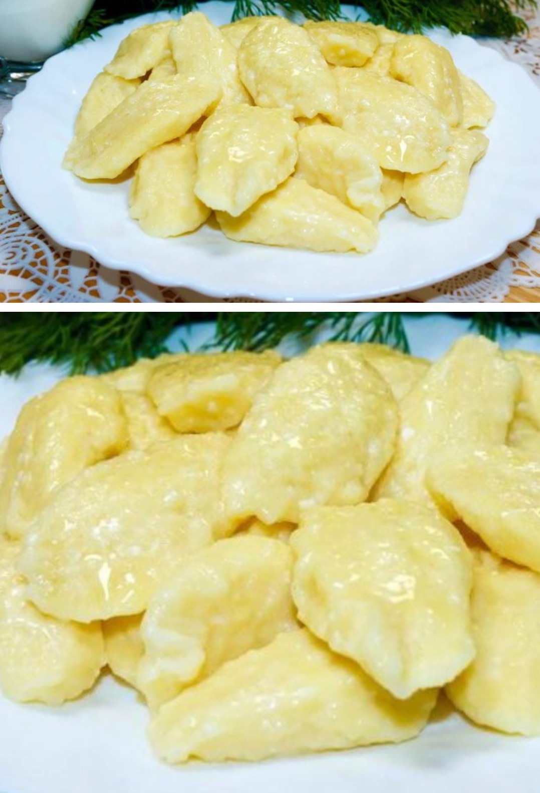 - Ложкой вынимайте их из воды и укладывайте на блюдо. Полейте вареники растопленным сливочным маслом.