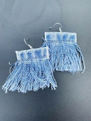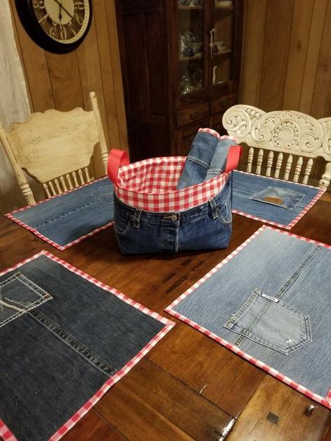 Из оставшихся кусков джинсов можно также легко сделать красивые броши, серьги или даже набор для сервировки стола.