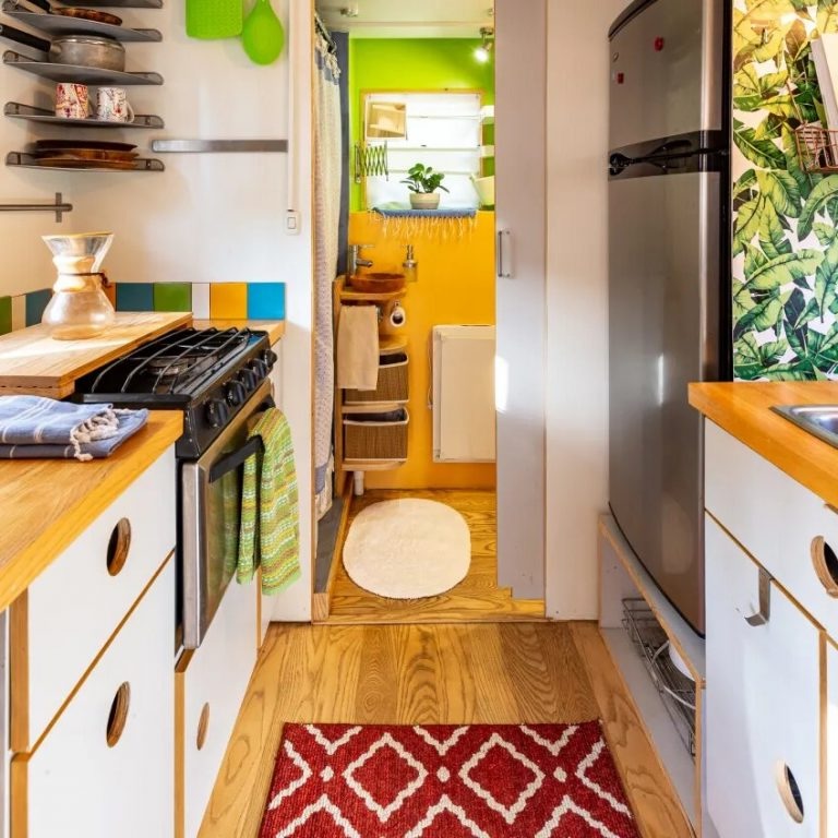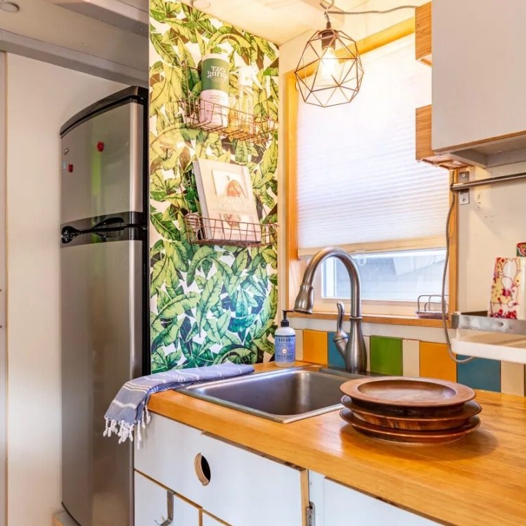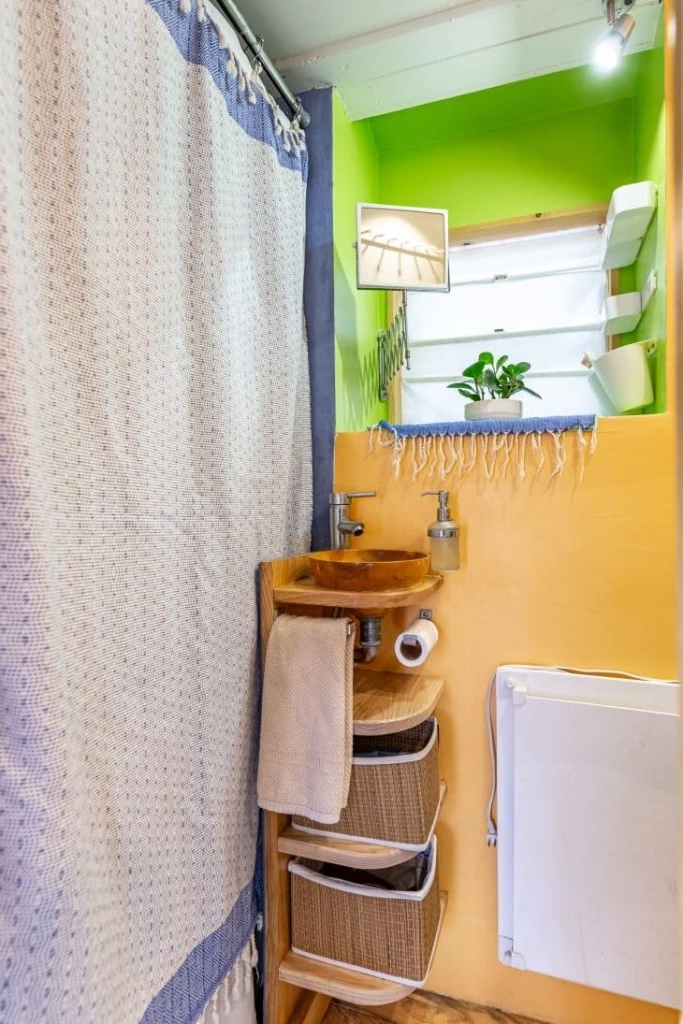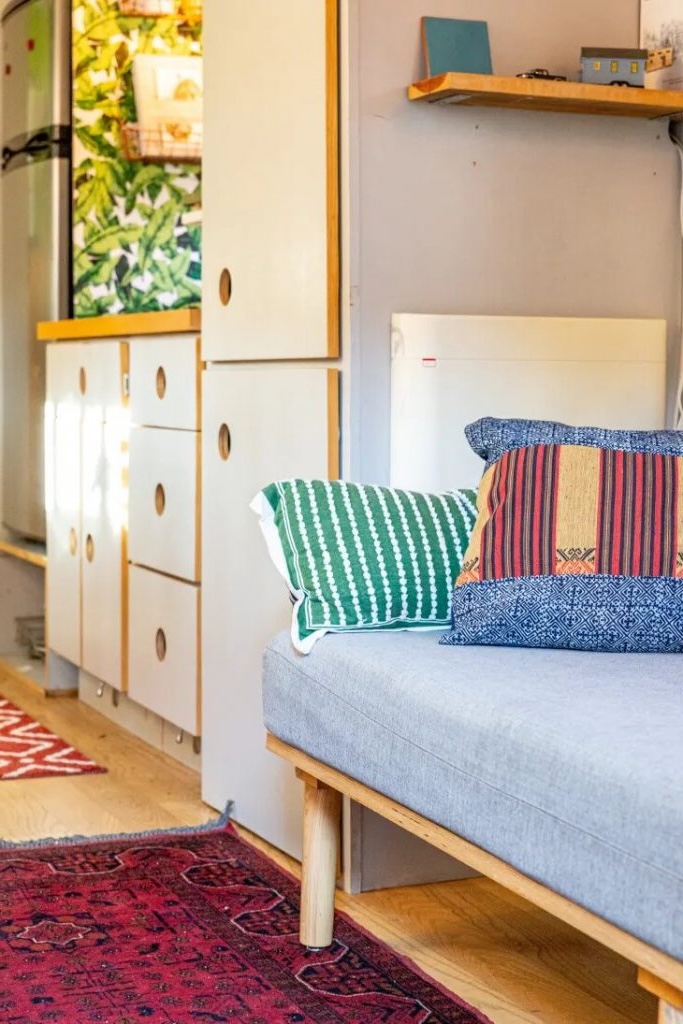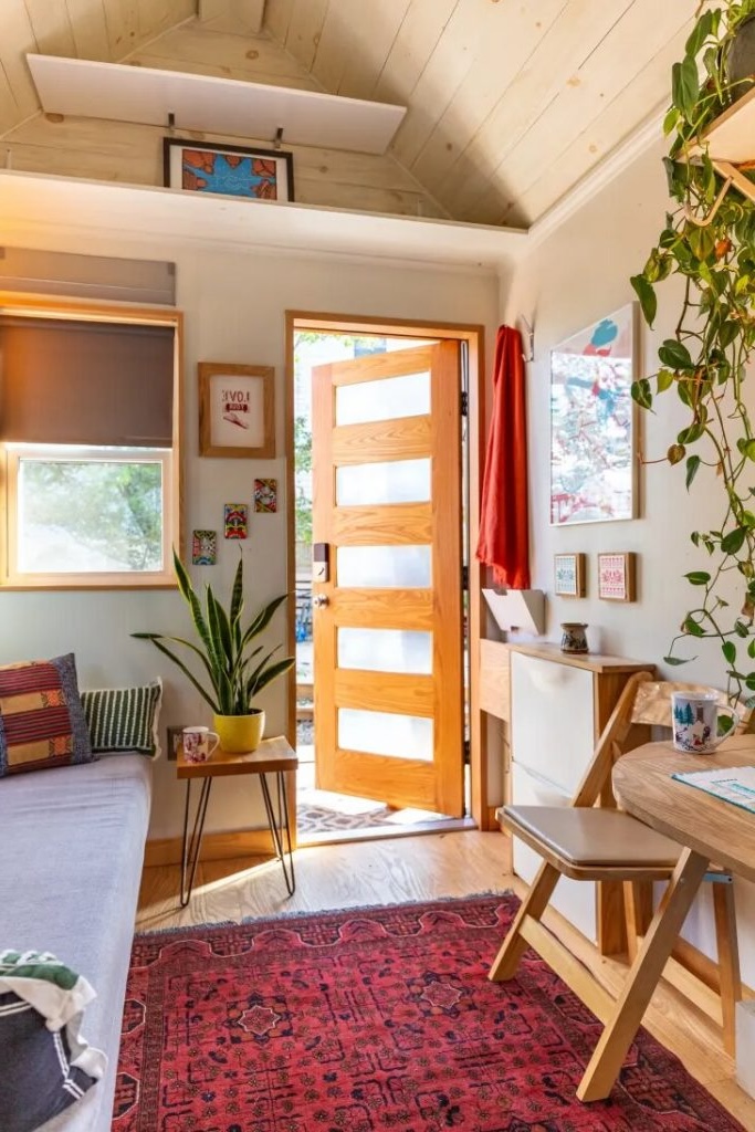 Внутри есть всё необходимое для комфортного проживания: спальня, кухня, ванная комната и даже рабочая зона.