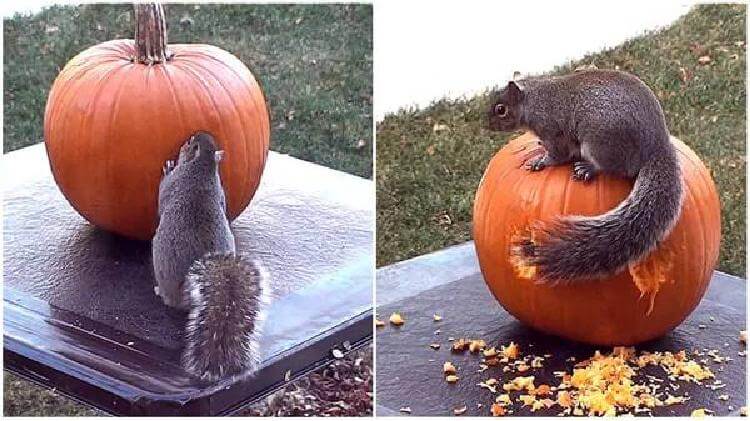 Белочка увидела тыкву и сделала из нее шедевр