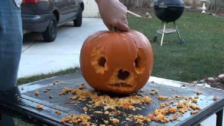 А вот и результат ее творчества!!! Белка сделала из тыквы самую настоящую маску для Хеллоуина! Но кто ее этому научил?!
