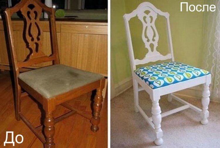 Аккуратная покраска и яркая обивка сиденья позволят вдохнуть новую жизнь в старый ветхий стул и сделать из обузы стильный предмет интерьера.