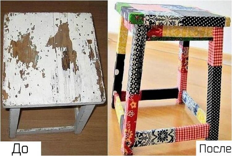 Преобразить старый ветхий табурет поможет техника декупаж, которая позволит перенести на невзрачную мебель яркий узор или целую картину.