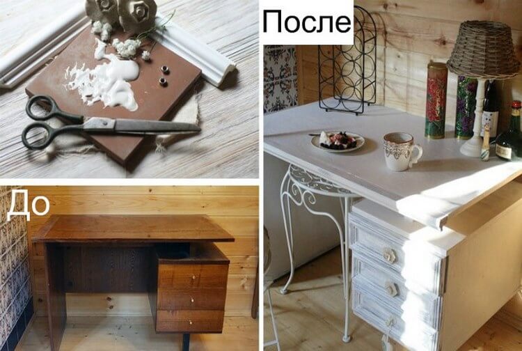 Простое преображение безликого деревянного стола, которое удалось произвести с помощью аккуратной покраски в белый цвет и оригинальной фурнитуры.