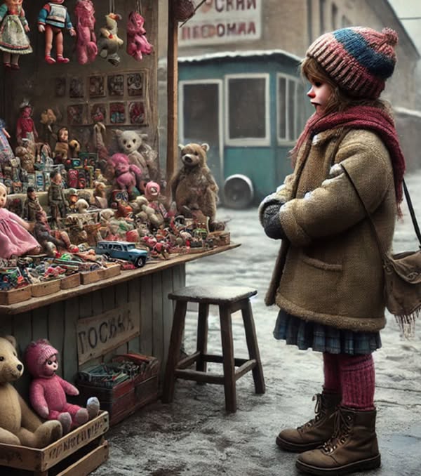 Девочка стояла перед Дмитрием, настороженно, но без страха. В её глазах не было ни благодарности, ни отчаяния, только искренний интерес и какая-то растерянность. Она не отступала, но и не шла дальше. Время будто замерло, и Дмитрий, почувствовав это, наконец понял, что ему нужно сделать. Он пошёл к своему ларьку, который всегда был полон ярких игрушек, и начал вытаскивать их одну за другой, складывая в большую коробку.