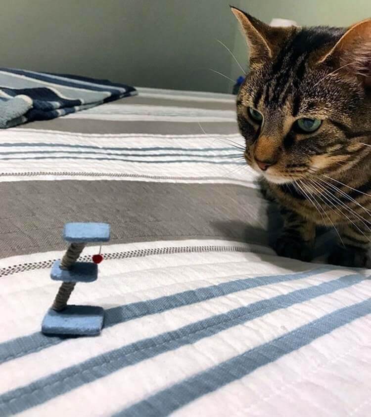 Даже котейка поняла, что хозяин облажался с размером…