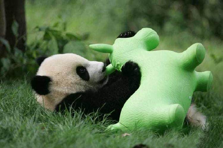 Маленькие панды ведут себя как дети. Животные катаются на качелях, которые сделаны из автомобильных шин, борются друг с другом и спускаются с горок.