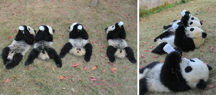 Воспитатели в этом детском садике малышей кормят молоком, ведь в таком юном возрасте им ещё нельзя есть бамбук.