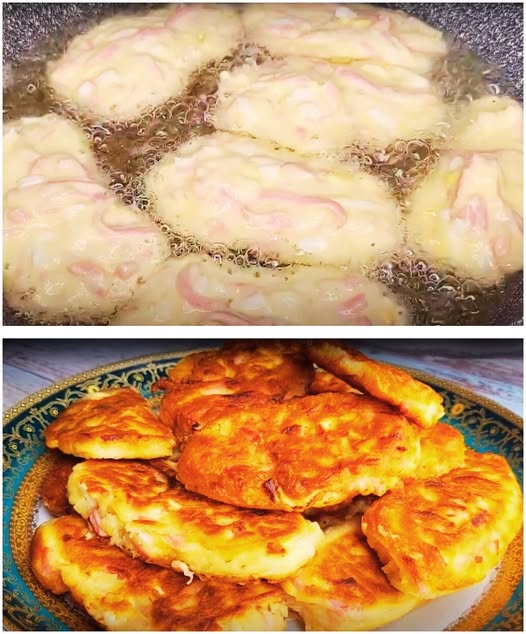 Натираем на крупной терке колбаску и сыр. Яйца вареные режем кубиками. Добавляем все прямо в тесто. Выкладываем ложкой на раскаленную с маслом сковородку и жарим до красивой корочки с каждой стороны.