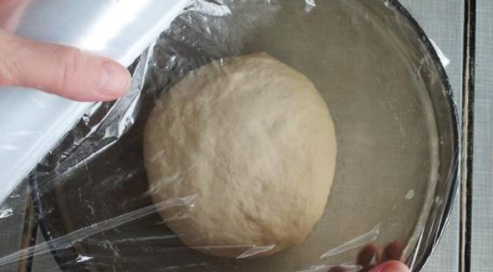 Смазываем кастрюлю раст. маслом и кладём туда тесто. Накрываем плёнкой и забываем примерно на 40 — 60 минут. Как только тесто сильно поднялось. достаём и обминаем его.