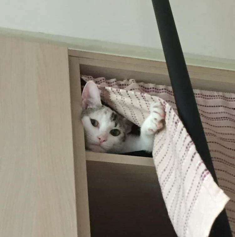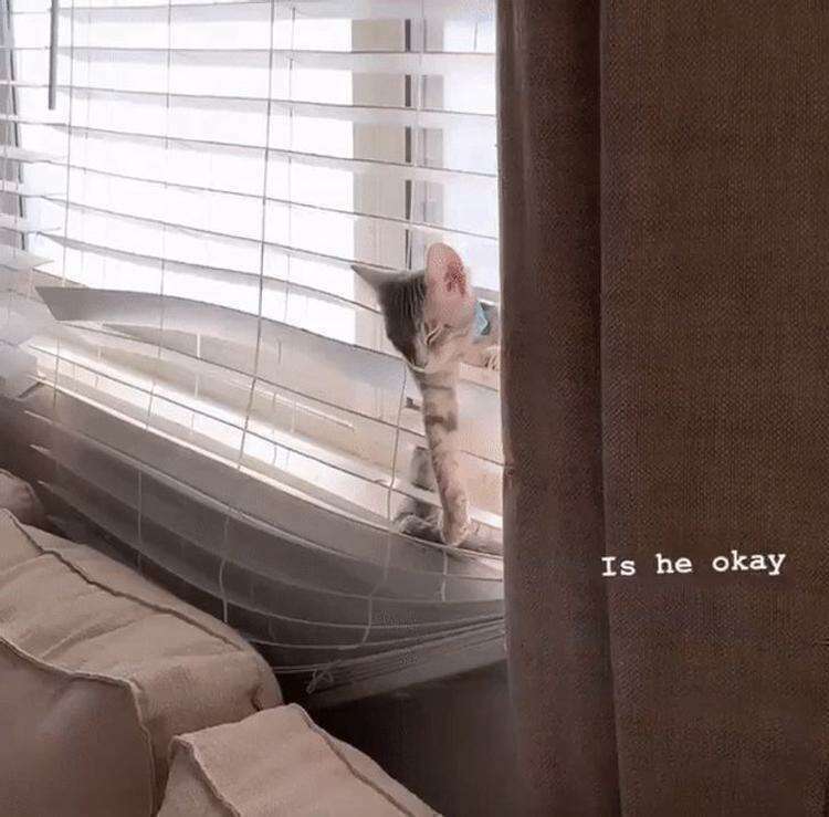 Котик снёс полотенце с вешалки, свалился следом, немного запутался и решил уснуть