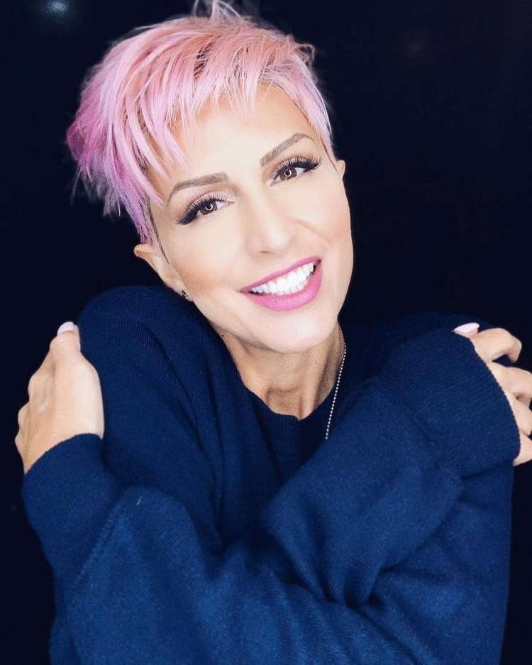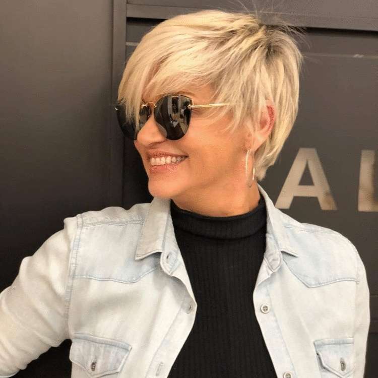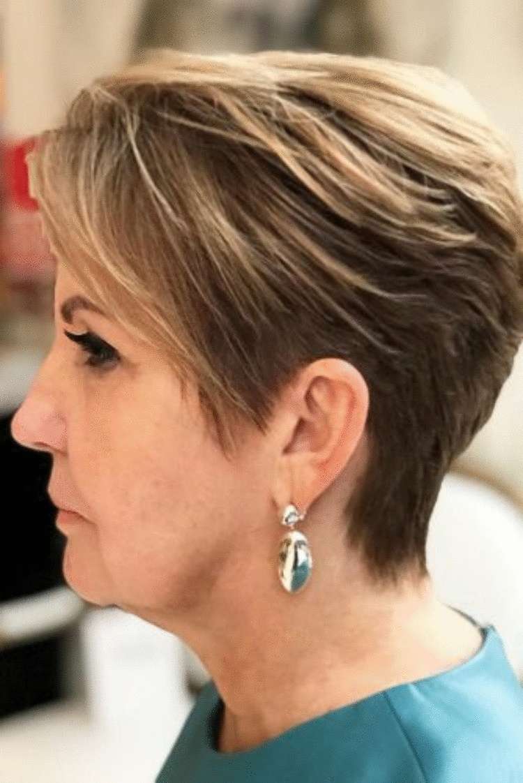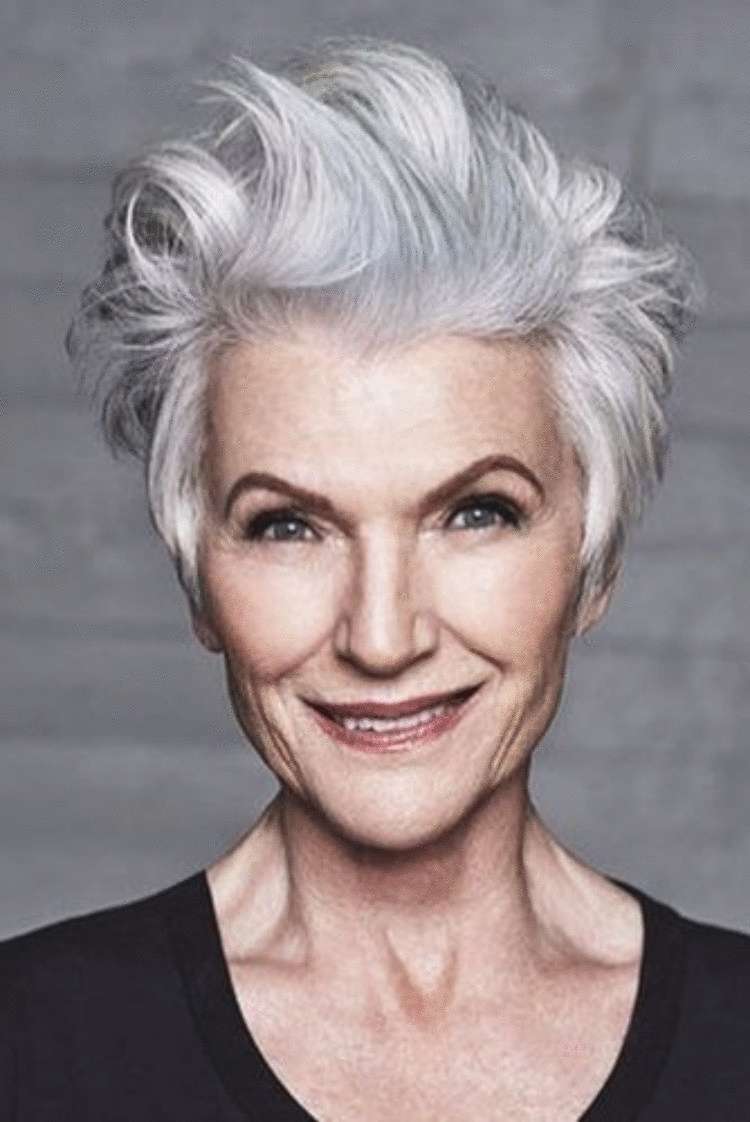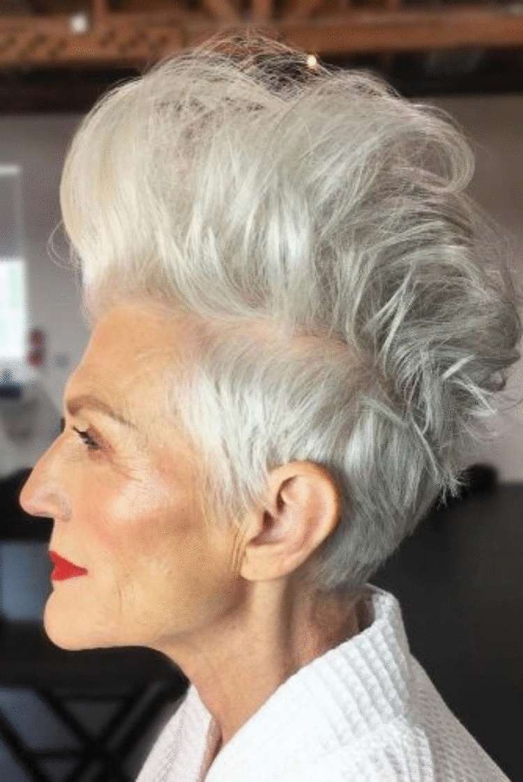 Шикарный и стильный образ Шарон Стоун – прекрасный пример смелой и дерзкой стрижки для пожилых женщин. Эта дерзкая и рельефная стрижка пикси с несколькими яркими прядями лучше всего подходит для тех, у кого овальные черты лица.