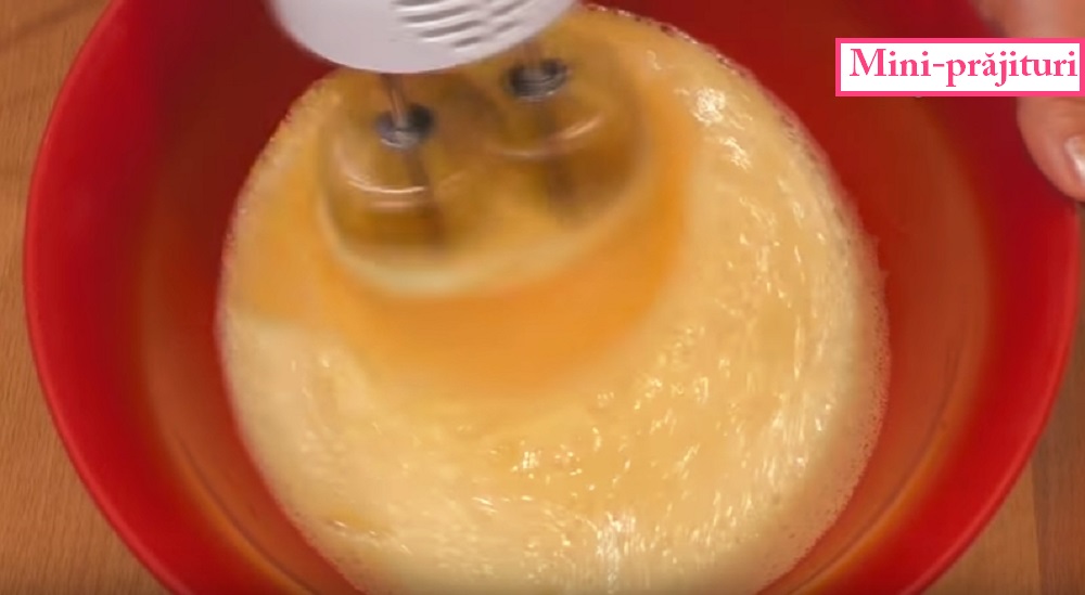1. Приготувати бісквіт: з’єднати яйця з цукровою пудрою і ванільним цукром. Збийте їх міксером протягом 7-10 хвилин. За цей час яєчний склад повинен стати білястим і значно збільшитися в об’ємі. Якщо його добре збити, на ньому залишаться сліди, залишені збивачами міксера, або стійка борозенка, коли ви проведете крізь нього пальцем.
