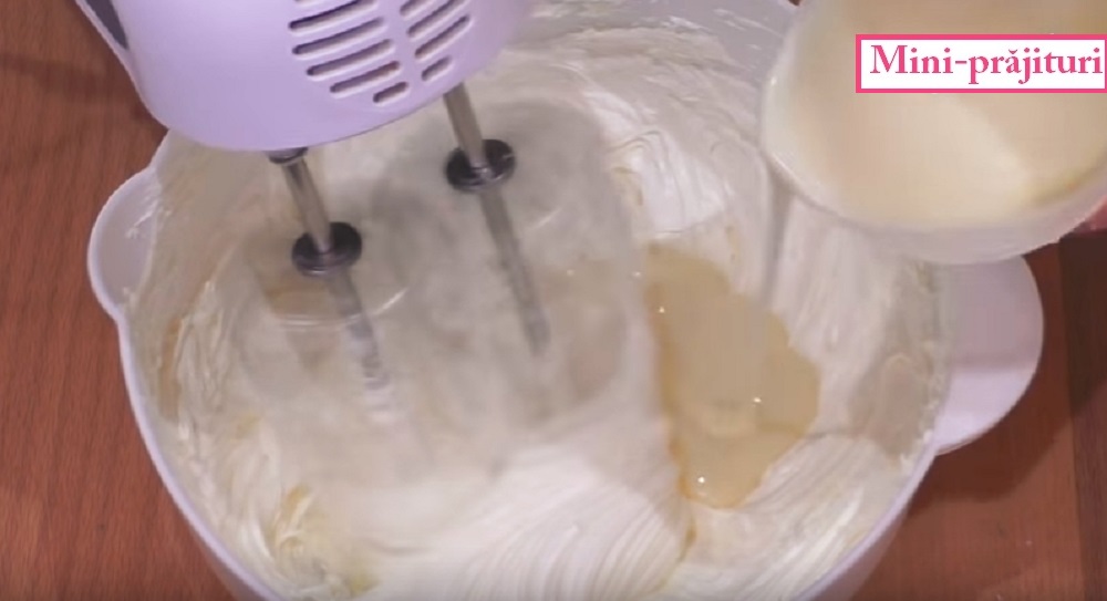 10. Приготуйте крем: м’яке вершкове масло кімнатної температури збийте міксером, поки воно не стане пишним, білястим і не набуде консистенції густої сметани (4-5 хвилин). Не припиняючи перемішування, поступово додайте (по одній столовій ложці) згущене молоко (кімнатної температури). Збити вершки до однорідності. Воно стане повітряним і пухнастим.