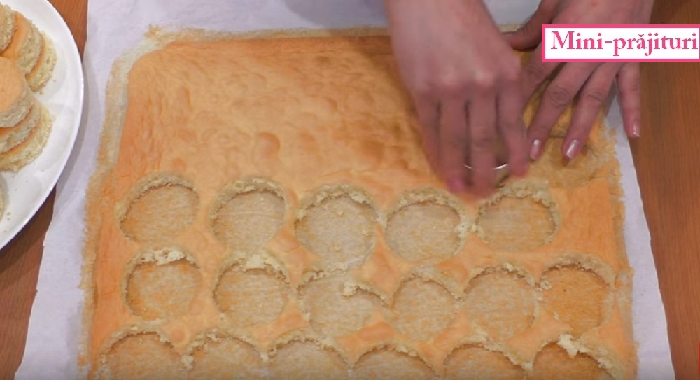 11. Сухим стаканом або металевим кільцем виріжте з бісквіта кружечки діаметром приблизно 4-5 см.