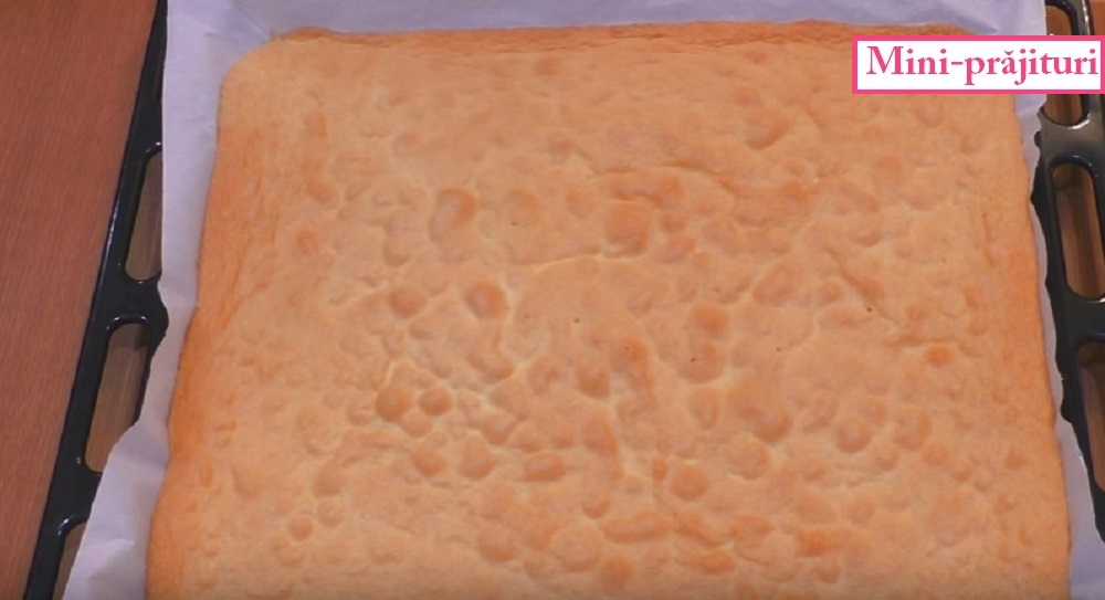 9. Вийміть бісквіт з духовки і дайте йому повністю охолонути. Потім зніміть з його поверхні папір для випічки.