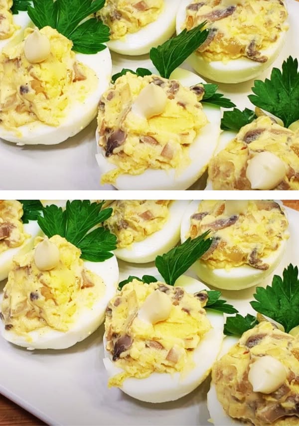 Ця страва відрізняється не лише насиченим смаком, а й привабливим зовнішнім виглядом, завдяки чому вона виглядає дуже ефектно на будь-якому столі. Основний інгредієнт – варені яйця – доступний і не потребує складної підготовки. Їх можна наповнювати різноманітними начинками: від класичного поєднання м’якого жовтка, майонезу, гірчиці та спецій до оригінальних варіацій із додаванням грибів чи інших продуктів.