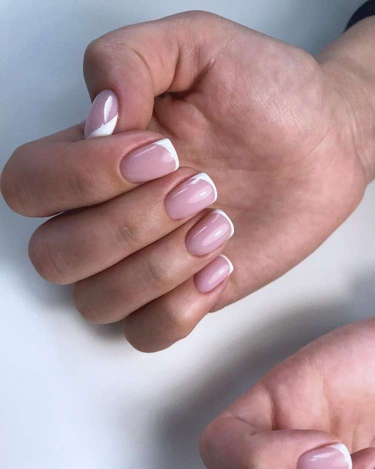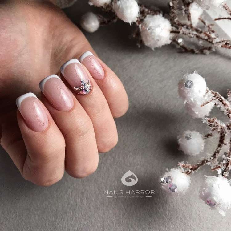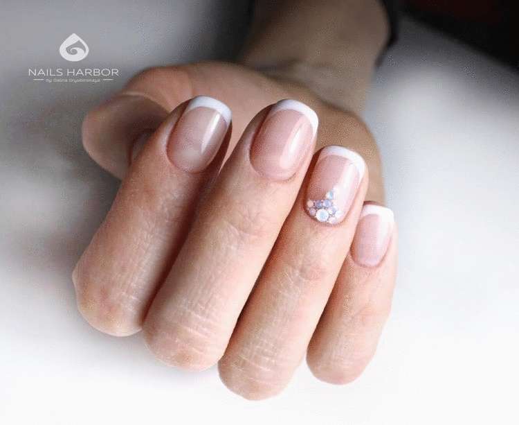 Во-первых, французский маникюр всегда смотрится аккуратно и женственно. Во‑вторых, он удлиняет ногти (то, что нам нужно). В-третьих, ты можешь поэкспериментировать с разными вариантами на тему французского маникюра.
