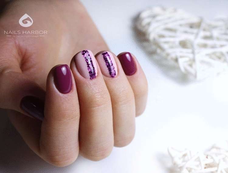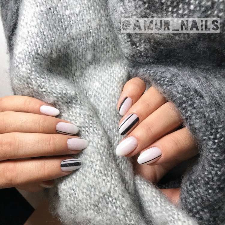 Не стоит забывать и о модных в этом году вертикальных полосах — их может быть по одной или несколько на одном ногте. Самое важное — создать контраст между основным цветом лака и полосками, чтобы они не сливались. Как вариант, ты можешь «начертить» диагональные линии, которые тоже удлиняют короткие ногти.