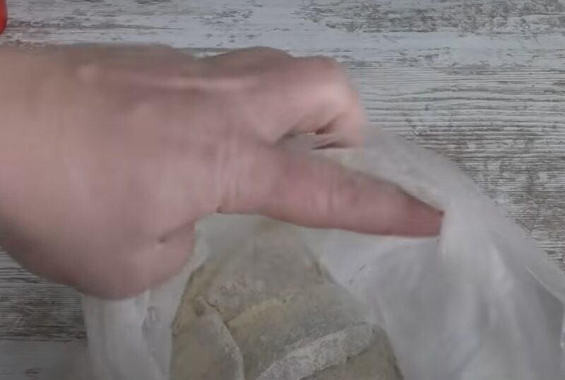 Смешиваем в пакете пшеничную и кукурузную муку. Выкладываем рыбные кусочки в целлофановый пакет с мукой, тщательно перемешиваем там филе.