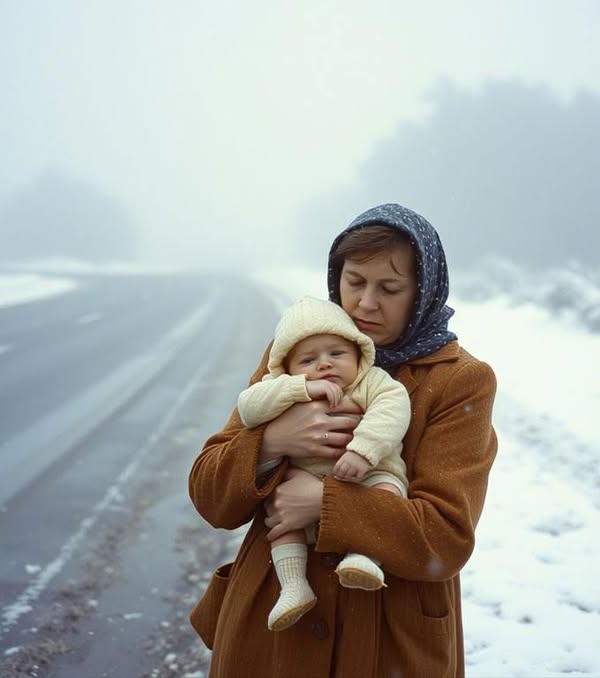 Но внезапно его взгляд зацепился за кого-то на обочине. Женщина стояла неподвижно, словно статуя. На первый взгляд, ничего необычного — зимой часто можно встретить людей, ожидающих попутку. Однако её поза, её заторможенность… Алексей Петрович инстинктивно сбросил скорость, чтобы лучше разглядеть. Женщина была закутана в тёмный пуховик, который явно не спасал её от пронизывающего холода. А в её руках что-то было завёрнуто. Он прищурился. Не «что-то». Малыш.