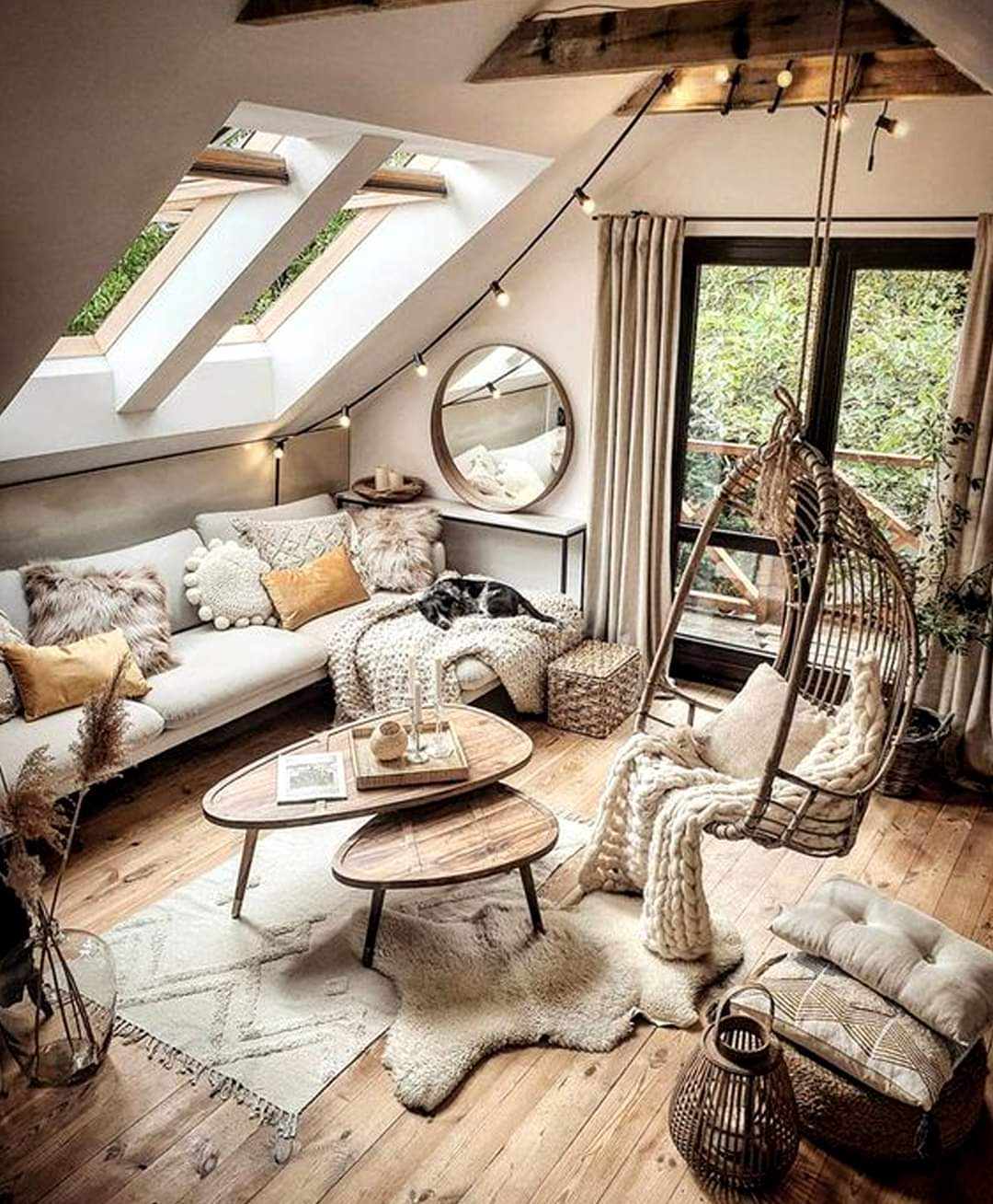 Используйте встроенную мебель или мебель с двойной функциональностью (к примеру, в ступеньки на второй этаж можно использовать как место для хранения вещей).