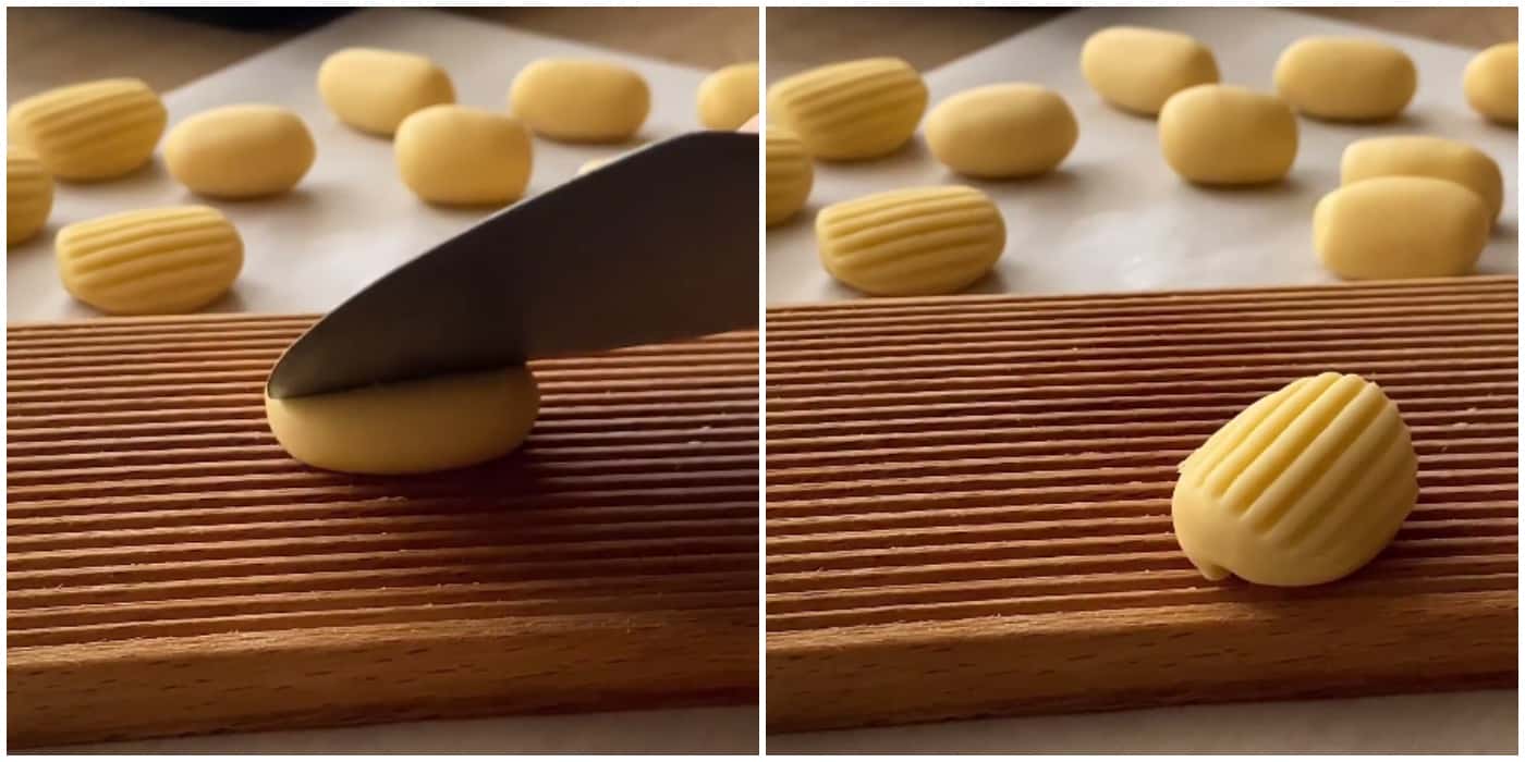Я використовувала прилад для ньокки, щоб сформувати печиво, якщо у вас його немає, ви можете сформувати його за допомогою іншого подібного приладу.