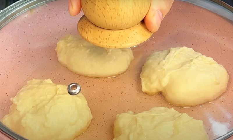 У сковороді розігріваємо трохи олії, викладаємо по столовій ложці тіста. Під кришкою обсмажуємо оладки на слабкому вогні 3-4 хвилини з кожного боку.