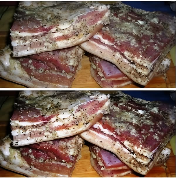 - 1,5 кг свиной грудинки с прослойкой;