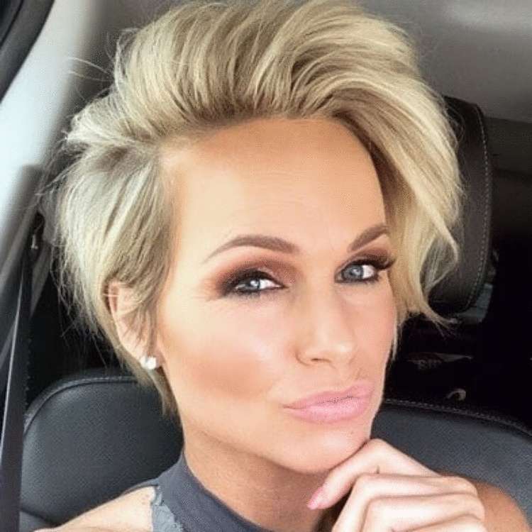 Шикарный и стильный образ Шарон Стоун – прекрасный пример смелой и дерзкой стрижки для пожилых женщин. Эта дерзкая и рельефная стрижка пикси с несколькими яркими прядями лучше всего подходит для тех, у кого овальные черты лица.