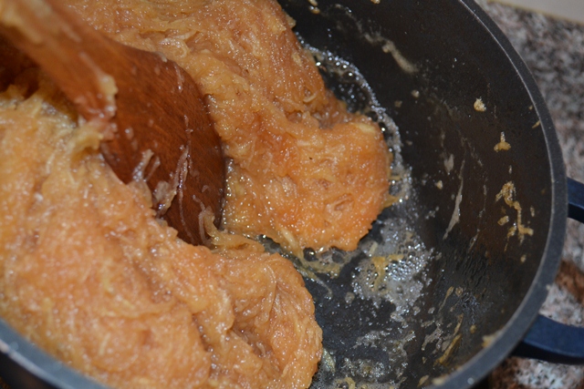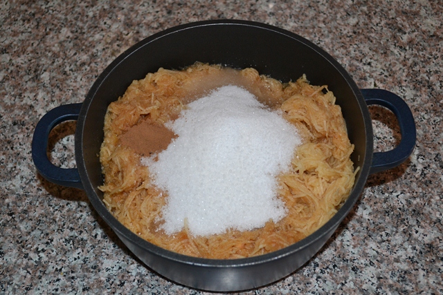 Поставте яблука з цукром, ванільним цукром і корицею тушкуватися на помірному вогні.