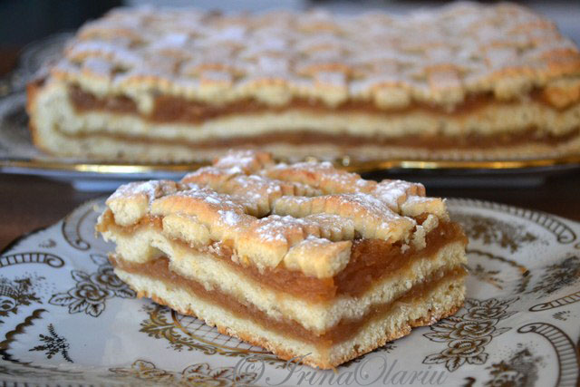 Поставити в духовку (розігріту до 180 градусів) на 50 хвилин. Дайте пирогу охолонути, потім посипте його цукровою пудрою. Коли охолоне, наріжте його шматочками. Потрібно постояти кілька годин, щоб тісто розм’якшилося.