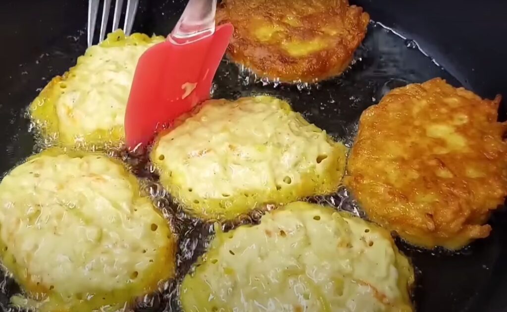 В сковороду с растительным маслом выкладываем по столовой ложке теста с начинкой, обжариваем пирожки с обеих сторон до золотистой корочки.